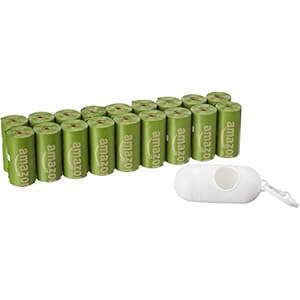 Amazon Basics Unscented Standard Dog Poop Bags with Dispenser and Leash Clip, 13 x 9 Inches, Black – 20 Rolls (300 Bags)