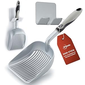 IPRIMIO Cat Litter Scooper with Deep Shovel – Non Stick Plated Aluminum Scoop – Designed by Cat Owners – Patented Sifter…