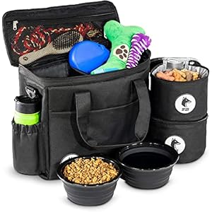 Black Dog Travel Bag for Supplies – Includes Travel Bag, Travel Dog Bowls, Food Storage – Airline Approved Dog Bags for…