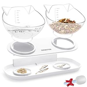 Cat Food Bowls Double Raised – Dorakitten Cat Feeding Bowl Double Kitten Dishes Kitty Water Feeder Raised with Stand for…