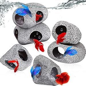 6 Pieces Aquarium Decoration Rock Caves Stackable Ceramic Fish Tank Hideout Cave Stone Ornaments Hideaway for Betta…