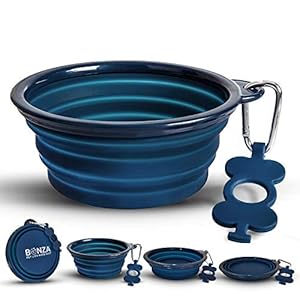 Bonza Large Collapsible Dog Bowl 1000 mL, Sturdy Reinforced Rim, Includes Carabiner & Water Bottle Holder Keychain