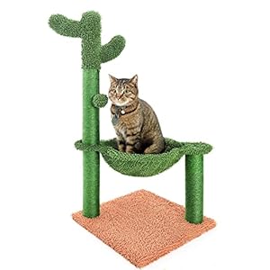 Catinsider 31″ Cactus Cat Tree with Hammock and Full Wrapped Sisal Scratching Post for Small Cats Only Brown Medium